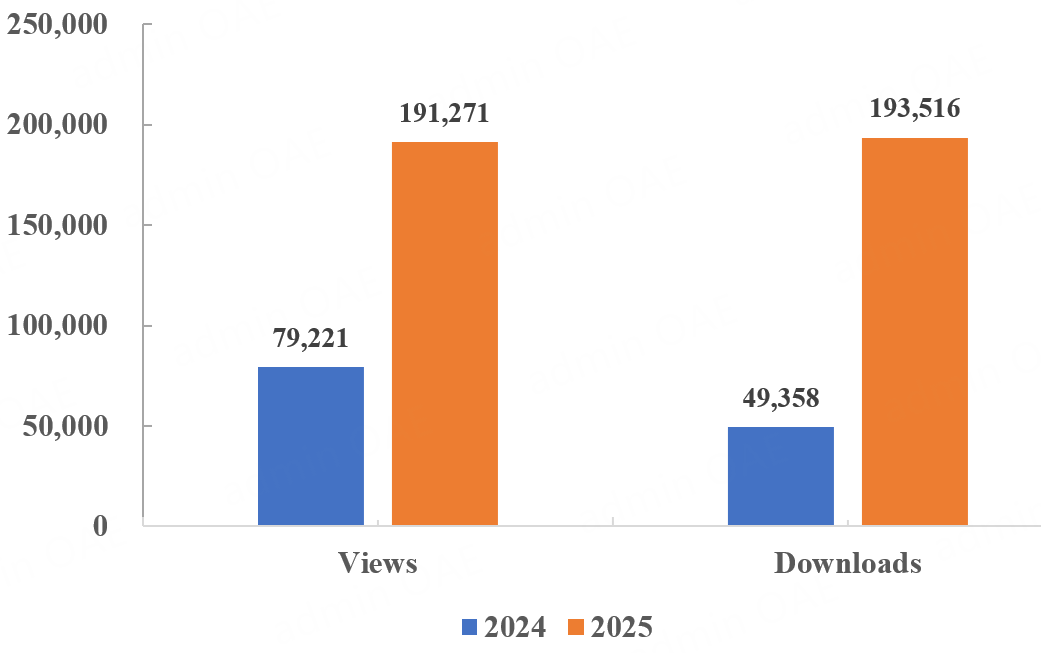 The journal published 100 articles across four issues, authored by 685 authors. Compared with 2024, the number of published articles increased by 66.7%, and the number of contributing authors grew by 75.19%, indicating continued expansion of the journal’s author base. Each issue featured customized front and back covers highlighting selected articles, further enhancing the journal’s visual identity. The rejection rate reached 55.43%, demonstrating the journal’s commitment to rigorous peer review while maintaining a constructive and supportive evaluation process.