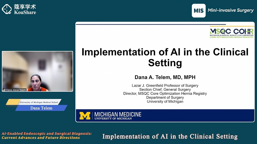 7:10–7:25 AM | Dr. Dana Telem | Implementation of AI in the clinical setting • To understand barriers and facilitators to the adoption of new technology • To evaluate successful implementation outcomes across heterogeneous systems • How to assess organizational/surgeon readiness for change |