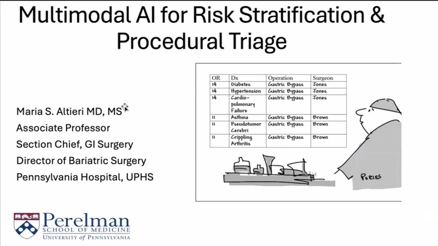 7:40–7:55 AM | Dr. Maria Altieri | Multimodal AI for Risk Stratification and Procedural Triage • Integration of radiology, pathology, and EHR data • Predictive models for cancer staging and surveillance planning • Applications in Barrett’s esophagus, IBD, and early GI cancers |